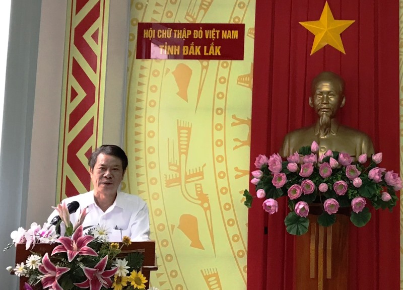 Phó Chủ tịch Hội Chữ Thập đỏ Lê Khôi Nguyên phát biểu khai mạc lớp tập huấn