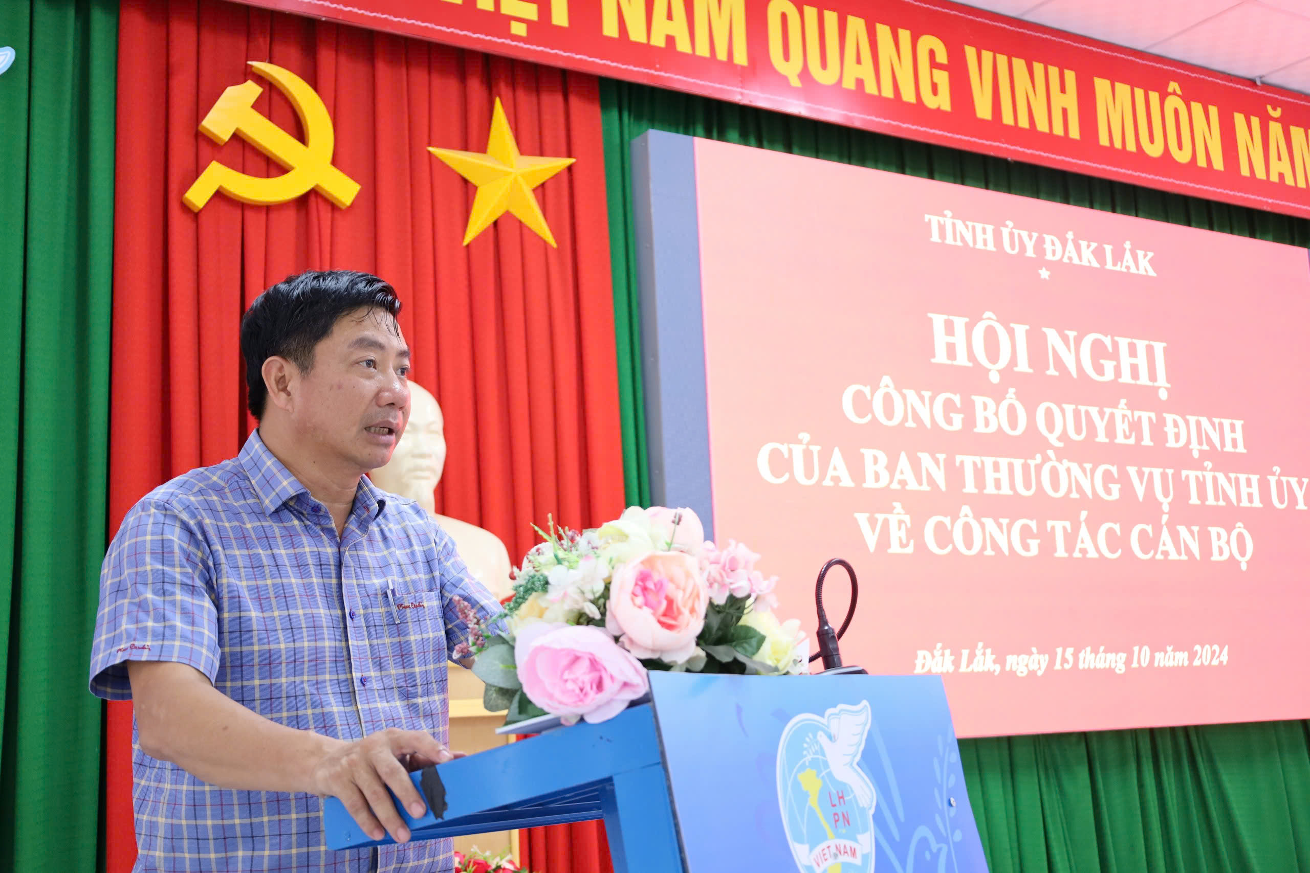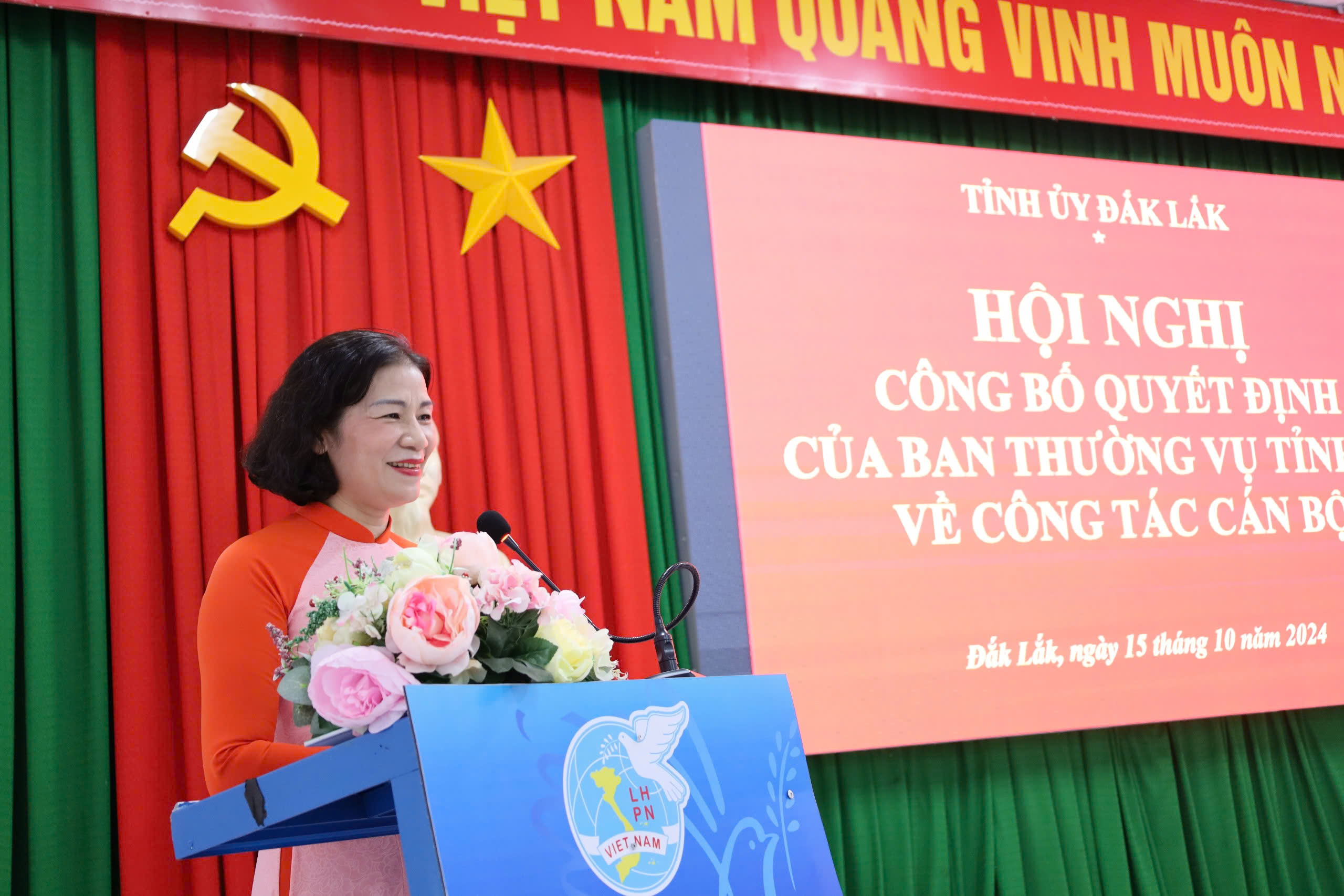 Chiều 15/10, tại trụ sở Hội Liên hiệp Phụ nữ (LHPN) tỉnh, thừa ủy quyền của Thường trực Tỉnh ủy, Ban Tổ chức Tỉnh ủy tổ chức Hội nghị công bố Quyết định của Ban Thường vụ Tỉnh ủy về công tác cán bộ. Đồng chí Nguyễn Thượng Hải, Ủy viên Ban Thường vụ Tỉnh ủy, Trưởng Ban Tổ chức Tỉnh ủy chủ trì hội nghị.