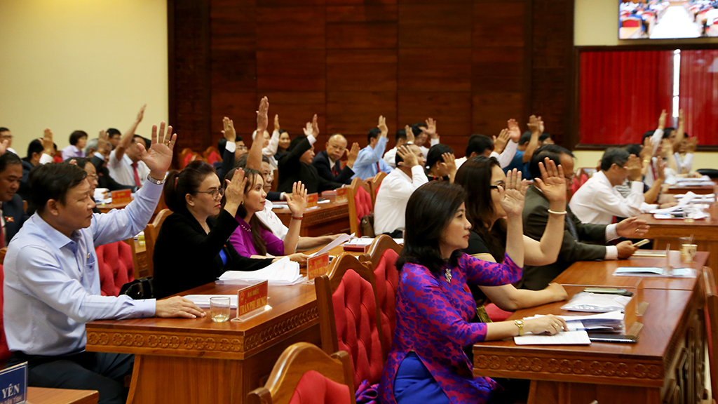 Đại biểu HĐND tỉnh biểu quyết thông qua Nghị quyết tại Kỳ họp